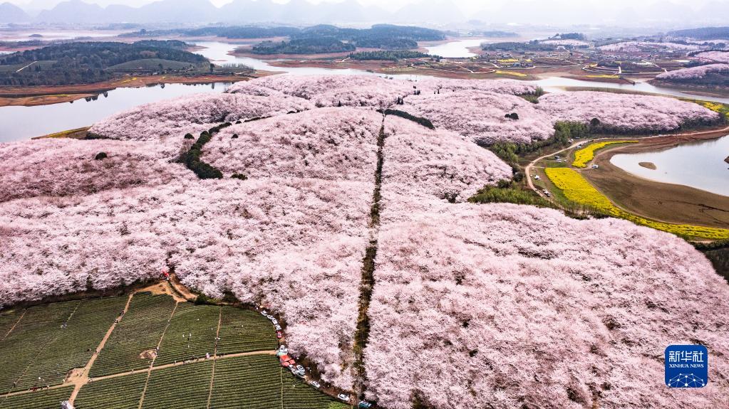 貴州省貴安新區櫻花園風貌(3月21日攝,無人機照片)。