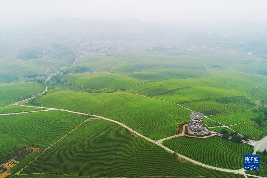 這是貴州省湄潭縣的“萬(wàn)畝茶?!憋L(fēng)光(無(wú)人機(jī)照片,2021年4月12日攝)。