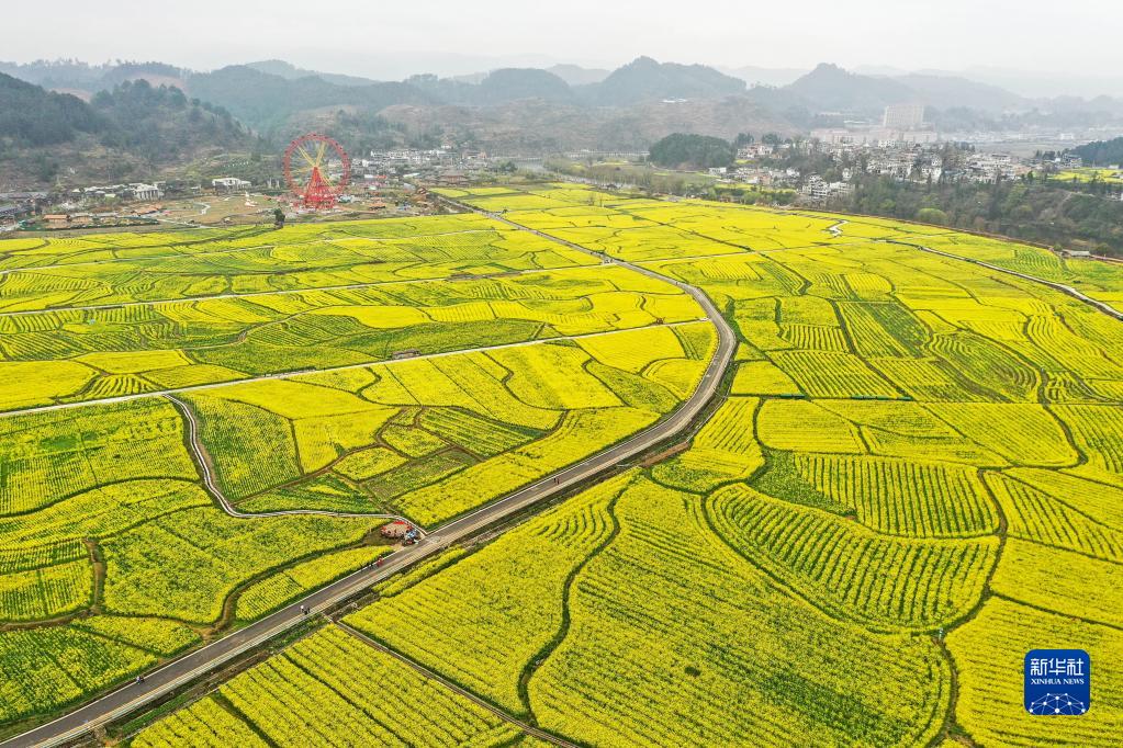 這是3月12日拍攝的貴州省貴定縣盤江鎮(zhèn)“金海雪山”景區(qū)油菜花海(無人機照片)。
