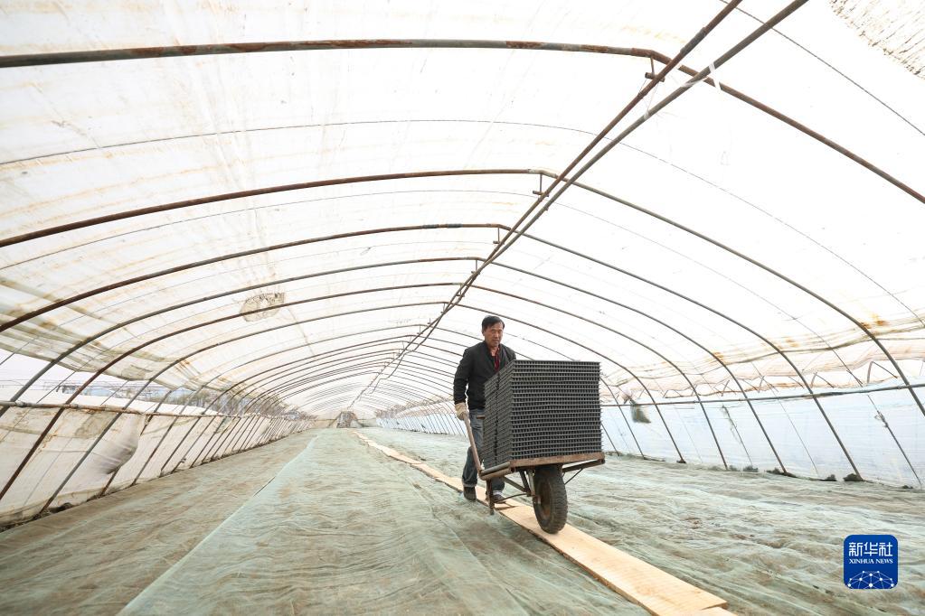 盤錦市是遼寧水稻主產區。近日,盤錦市的農民抓緊時間進行水稻秧苗育苗工作。