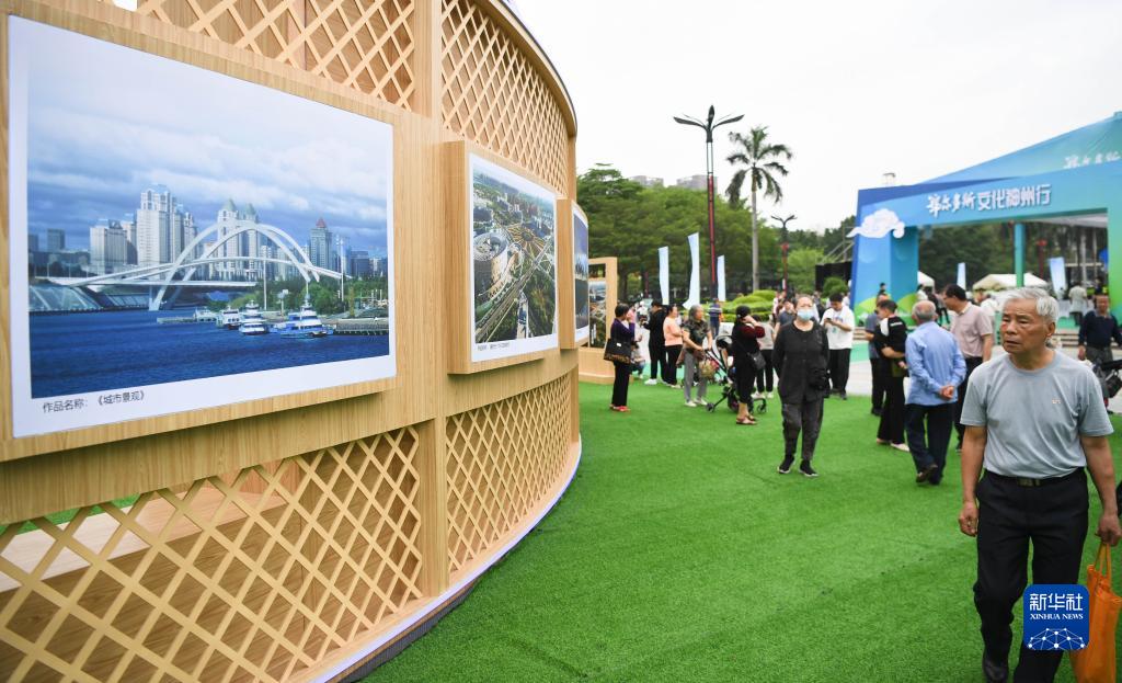 4月14日,在廣東佛山市文華公園,觀眾在觀看鄂爾多斯主題影展。