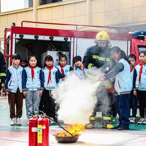 4月14日,在福建省廈門雙十中學翔安附屬學校,消防員指導學生學習救生結繩法。