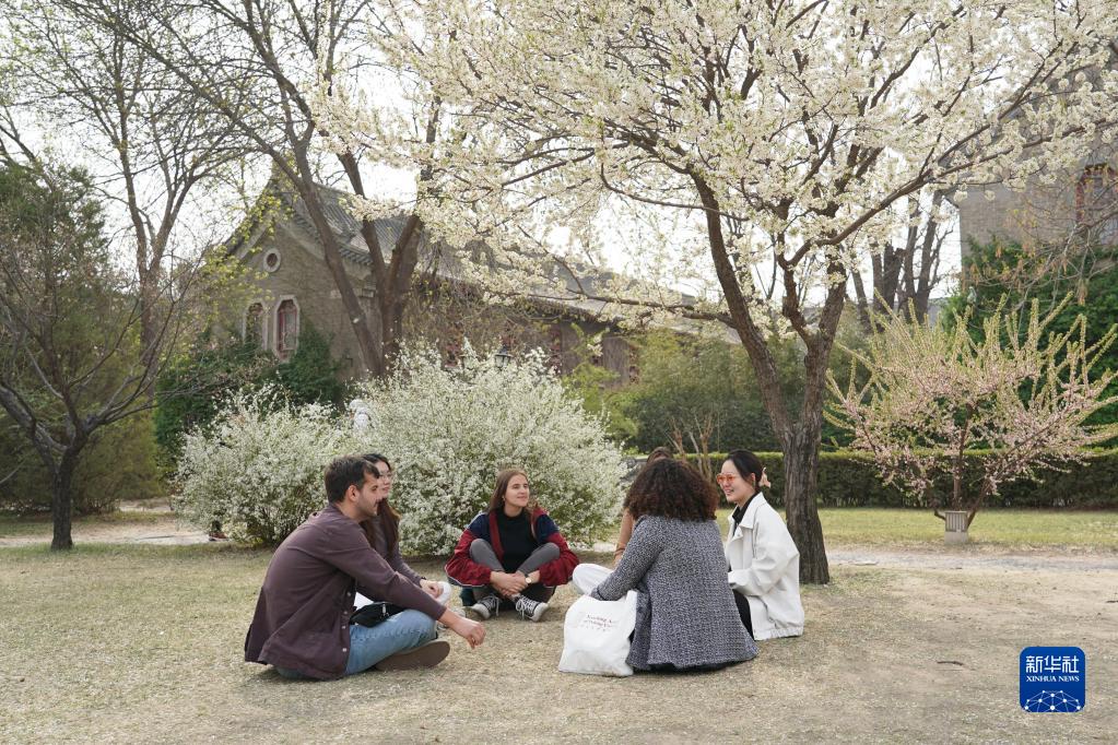 3月31日,馬可德(左一)在北京大學與同學們交流。