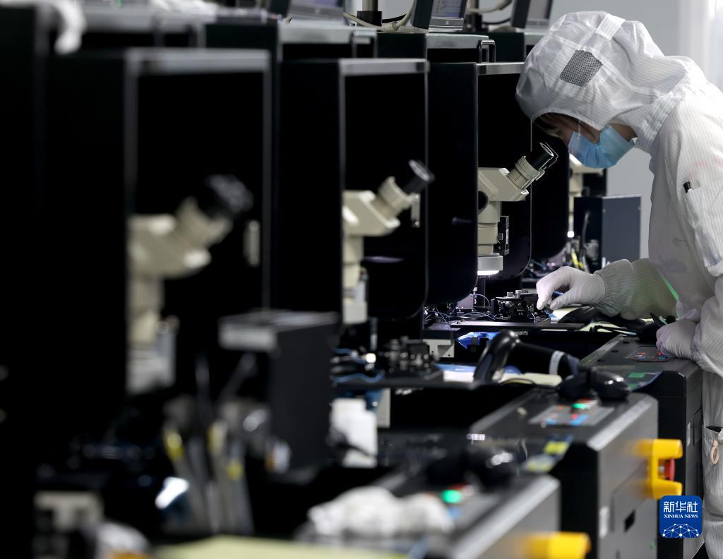 4月14日,一位工人在江蘇省射陽(yáng)縣江蘇暖陽(yáng)半導(dǎo)體科技公司LED芯片生產(chǎn)車(chē)間工作。