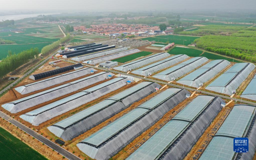 這是4月14日拍攝的山東省泰安市岱岳區范鎮鄭寨子村農業產業園景象(無人機照片)。