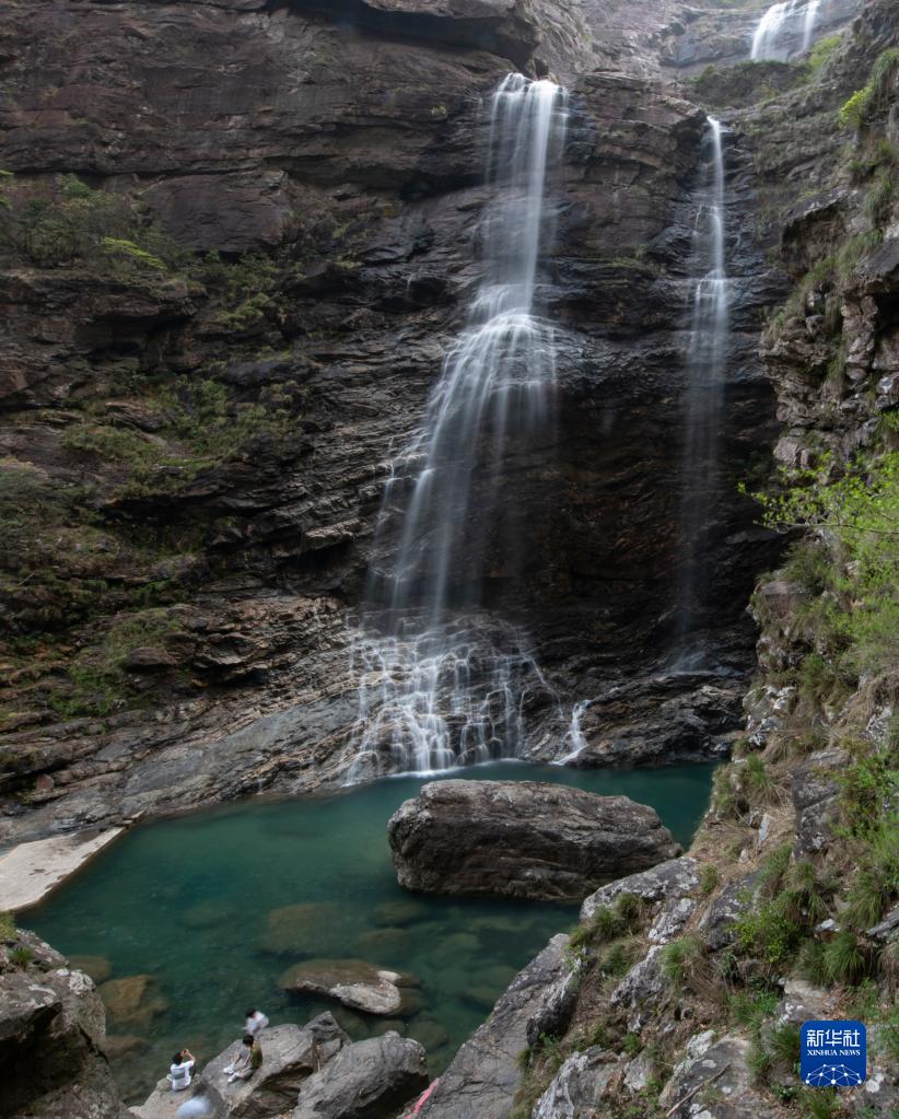 4月12日,人們在江西省九江市廬山風景區三疊泉游覽。