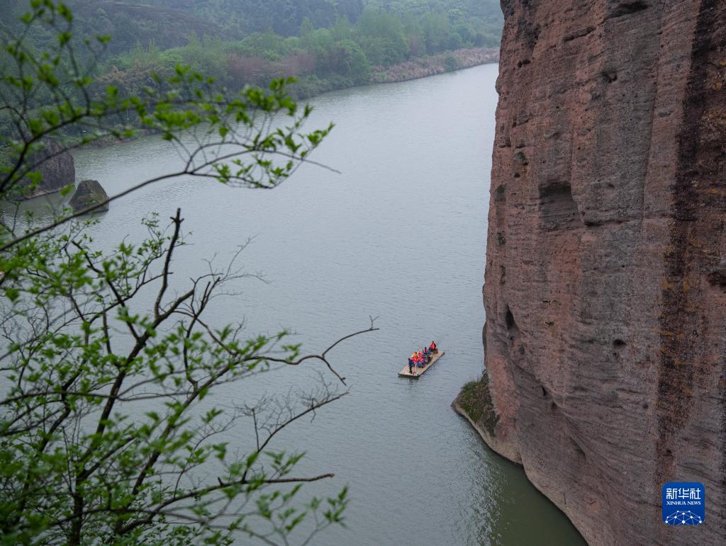 4月13日,游客乘竹筏在江西省鷹潭市龍虎山風(fēng)景區(qū)游覽。