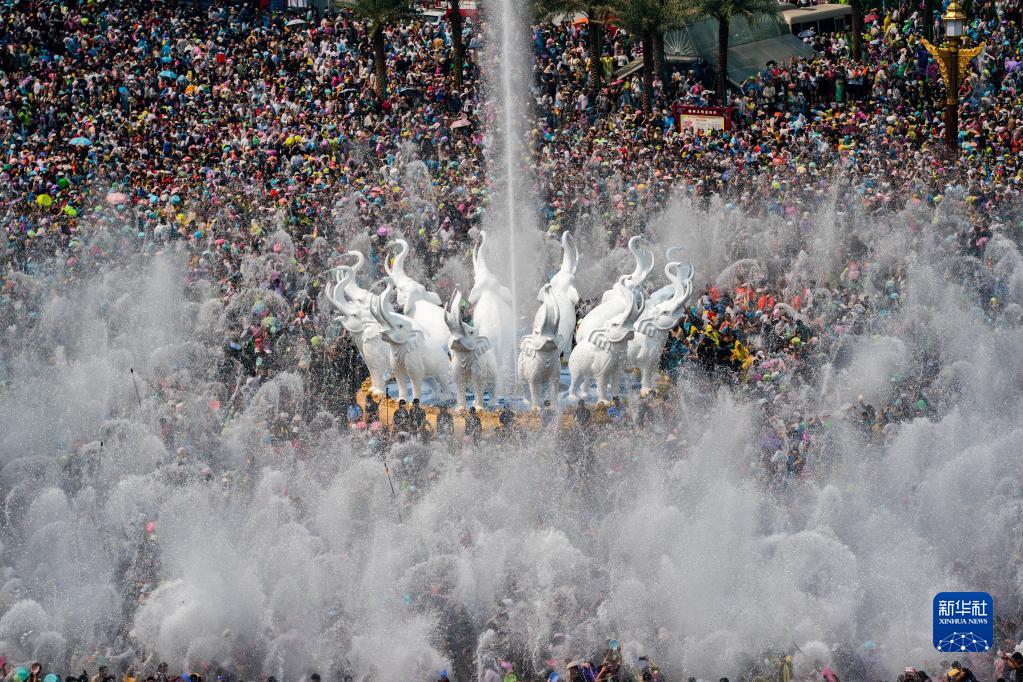 當日,云南省西雙版納傣族自治州舉行傣歷新年取水儀式及潑水狂歡,數萬名各族群眾和游客在景洪市用相互潑水的方式互送祝福、傳遞歡樂。