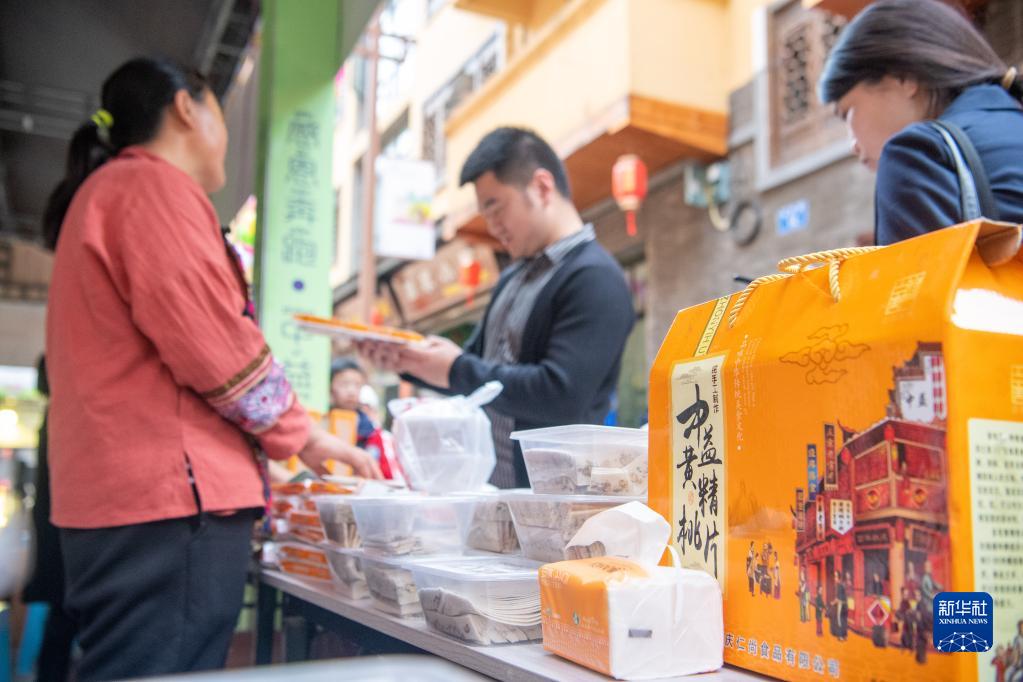 4月13日,在重慶市石柱縣中益鄉(xiāng),游客在選購黃精加工產(chǎn)品。