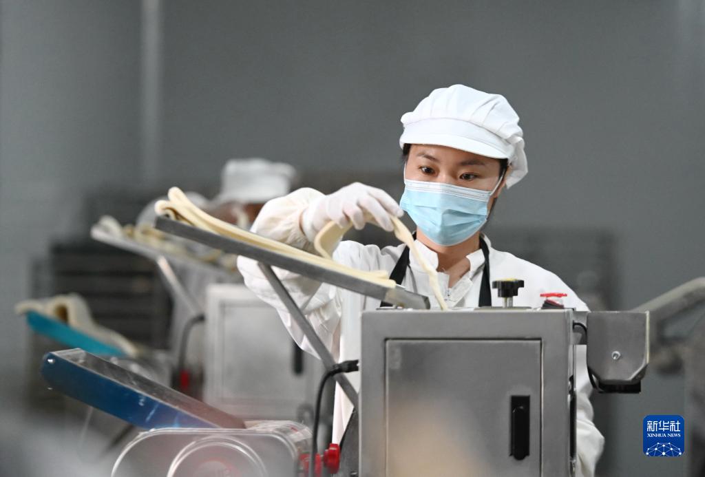 4月14日,在位于三明市沙縣庫區(qū)移民創(chuàng)業(yè)園的福建鑫滿園食品科技有限公司,工人在操作小籠包制作機(jī)。