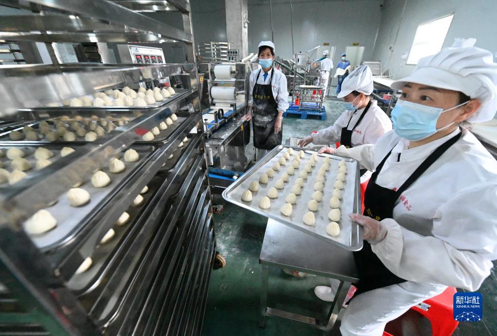 4月14日,在位于三明市沙縣庫區移民創業園的福建鑫滿園食品科技有限公司,工人在生產小籠包。