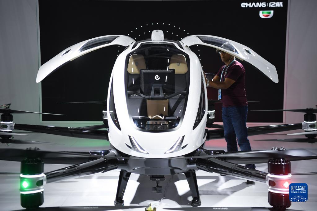這是廣交會新設置的新能源及智能網聯汽車展區展示的飛行器(4月15日攝)。