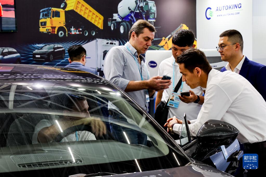 4月15日,采購商在廣交會新設置的新能源及智能網聯汽車展區了解中國新能源汽車產品。