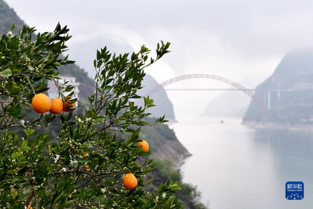 眼下,有“中國臍橙之鄉”美譽的三峽庫區湖北省秭歸縣長江兩岸橙花盛開,晚熟臍橙掛滿枝頭,花果同樹的橙樹與峽江景觀相映如畫。