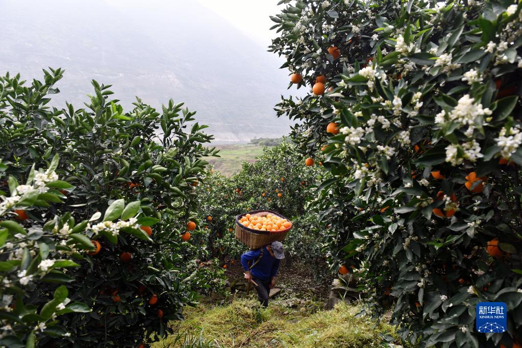 眼下,有“中國臍橙之鄉”美譽的三峽庫區湖北省秭歸縣長江兩岸橙花盛開,晚熟臍橙掛滿枝頭,花果同樹的橙樹與峽江景觀相映如畫。