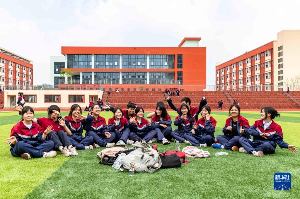 4月15日,黔西第一中學學生在操場歡快歌唱。