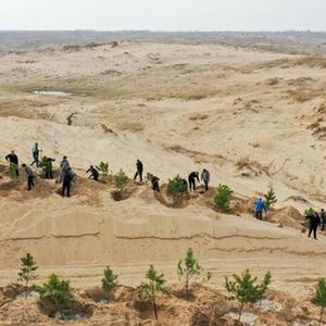 近日,在內蒙古通遼市科爾沁左翼后旗,治沙工人忙著植樹造林,給科爾沁沙地披上“綠裝”。科爾沁沙地橫跨內蒙古、吉林、遼寧三省區,沙地面積7760萬畝,在內蒙古通遼市境內占52.7%。近年來,依托“三北”防護林、退耕還林、公益林保護等重點生態工程,內蒙古通遼市不斷加大植樹造林、草原修復和生態保護力度,科爾沁沙地生態環境得到改善。