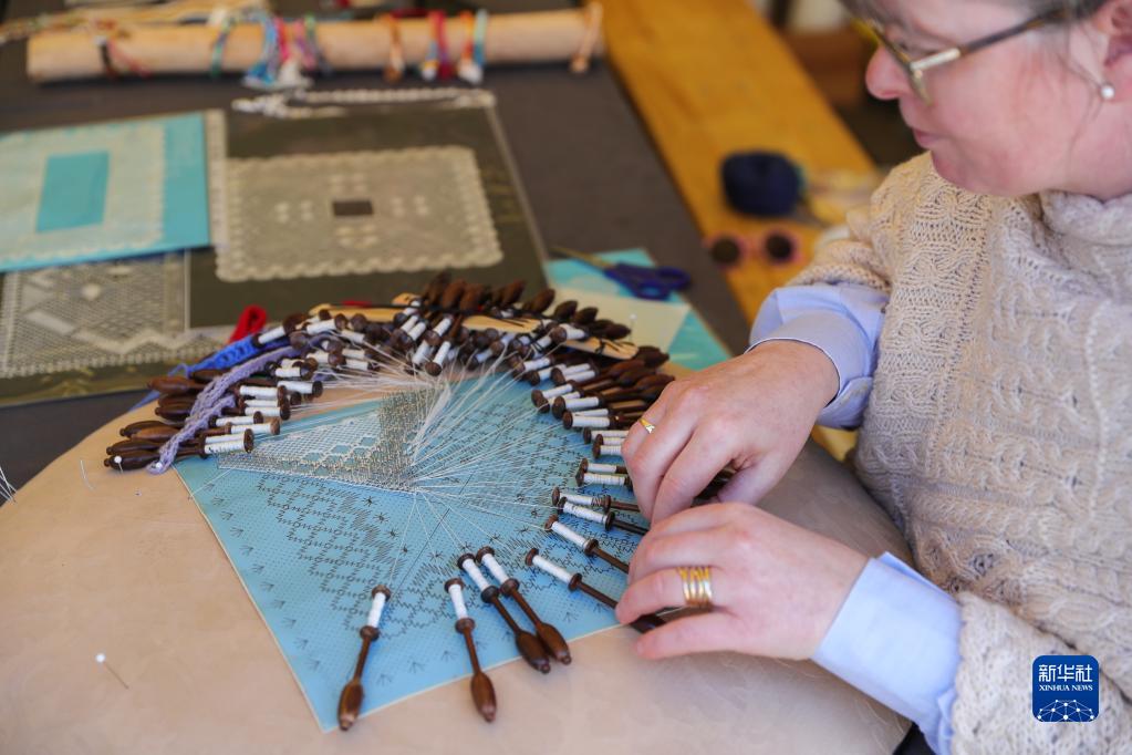 4月15日,一名手工藝人在比利時那慕爾市傳統民俗日活動上制作蕾絲。