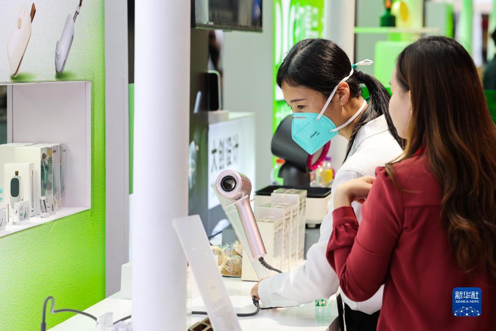 4月15日,采購商在第133屆廣交會上了解一家中國工業(yè)設計企業(yè)的小家電展品。