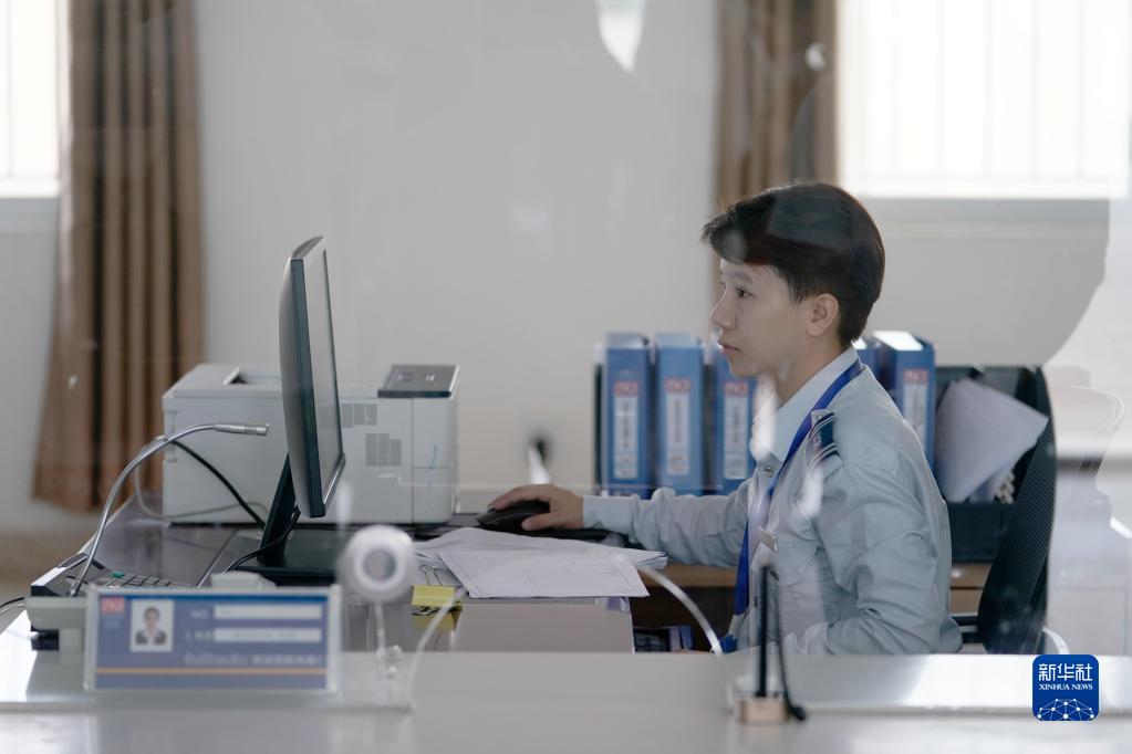 4月15日,老中鐵路有限公司的員工在老撾萬象南站工作。