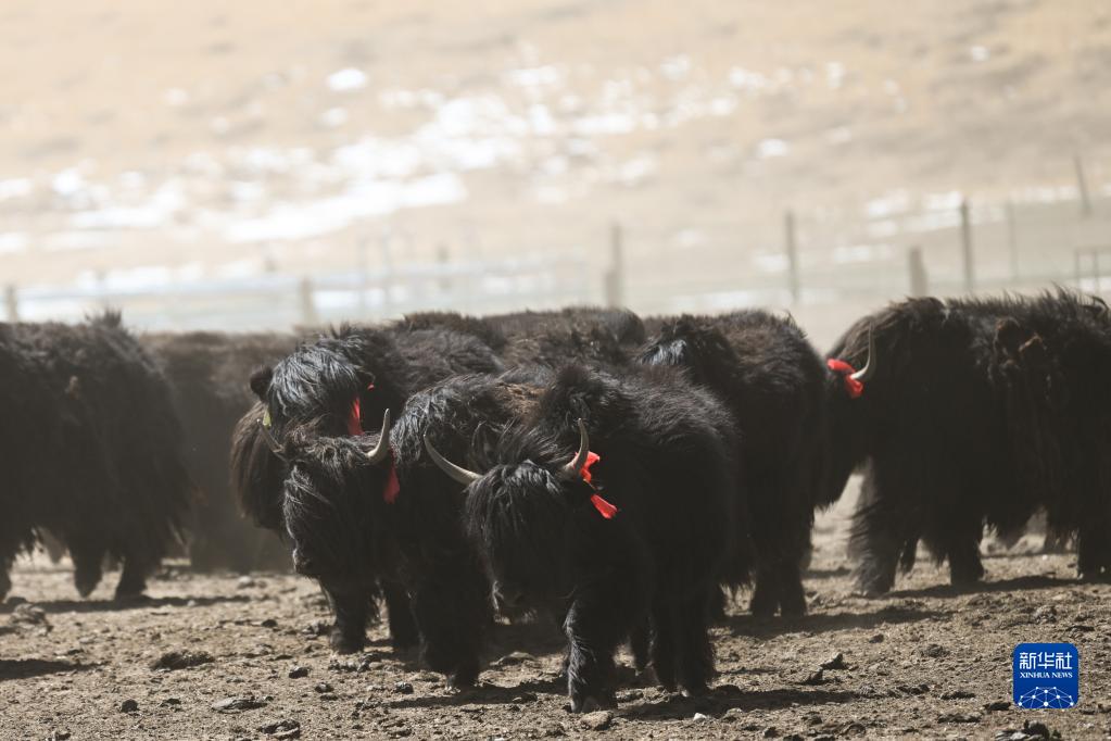 這是4月14日拍攝的剛察縣環(huán)湖型牦牛良種繁育基地內(nèi)的環(huán)湖型長毛牦牛。 新華社記者 張龍 攝