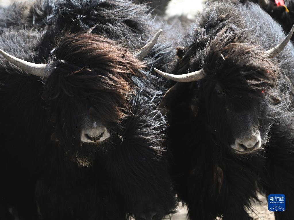 這是4月14日拍攝的剛察縣環(huán)湖型牦牛良種繁育基地內(nèi)的環(huán)湖型長毛牦牛。 新華社記者 張龍 攝