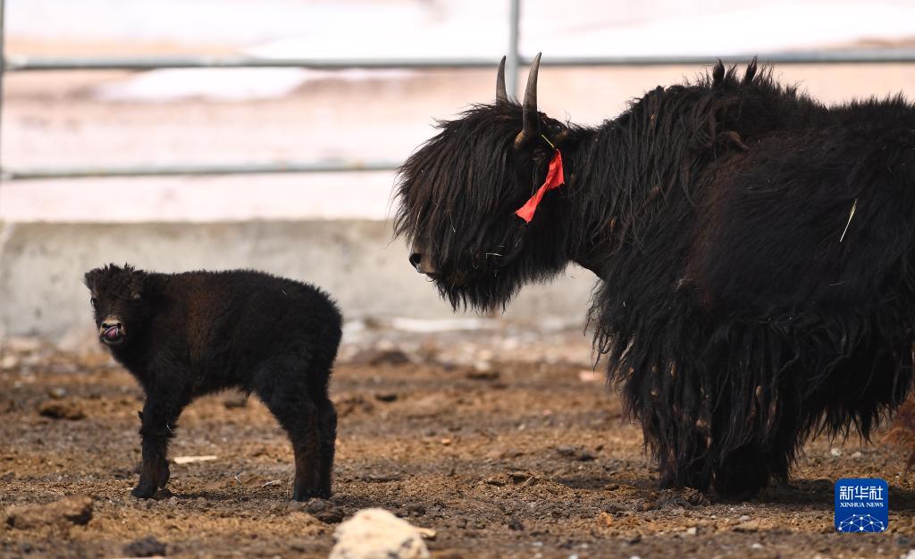 這是4月14日拍攝的剛察縣環湖型牦牛良種繁育基地內的環湖型長毛牦牛。 新華社記者 張宏祥 攝