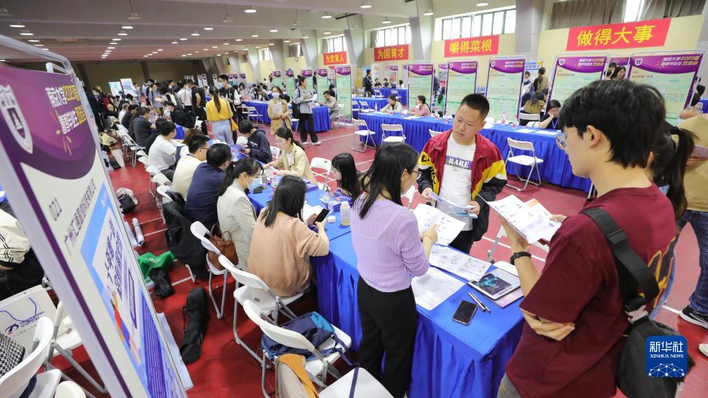 這是4月16日拍攝的南京大學2023屆畢業生春季雙選會現場。