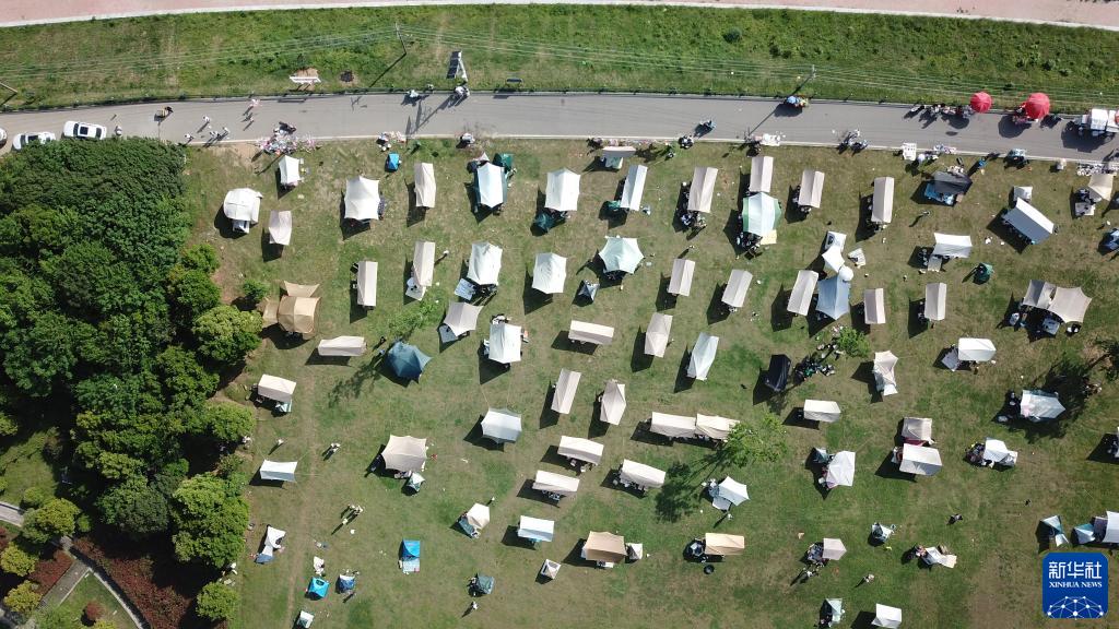 4月16日,市民在長沙市開福區(qū)湘江畔露營休閑(無人機照片)。