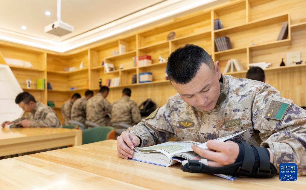4月13日,邊防連戰(zhàn)士在圖書(shū)室閱讀。
