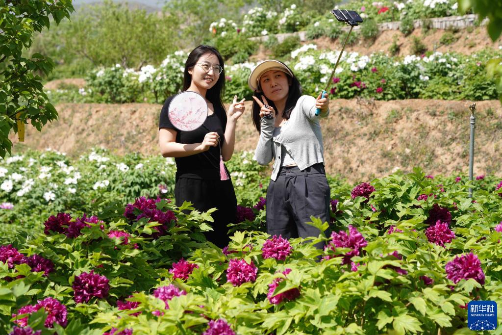 近日,河北省臨城縣石城鄉白臺峪村千畝牡丹花競相綻放,千姿百態、嬌俏動人的牡丹,吸引眾多游客前來觀賞游玩。