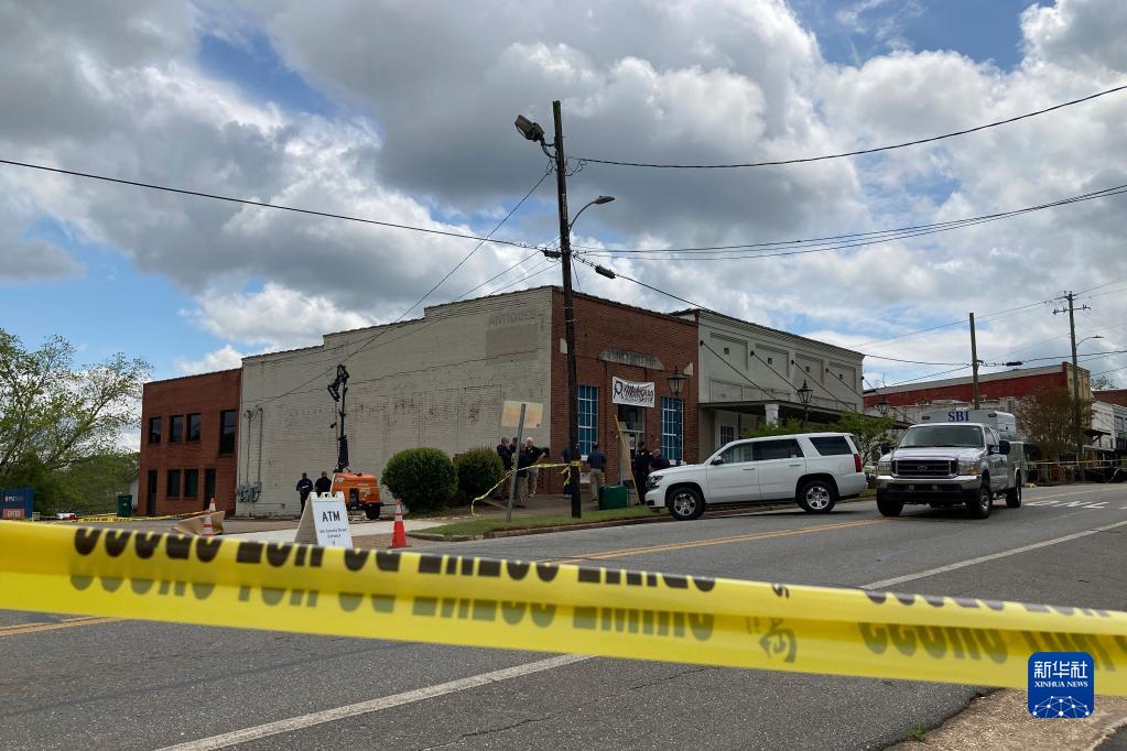 這是4月16日在美國亞拉巴馬州戴德維爾拍攝的槍擊事件現場。