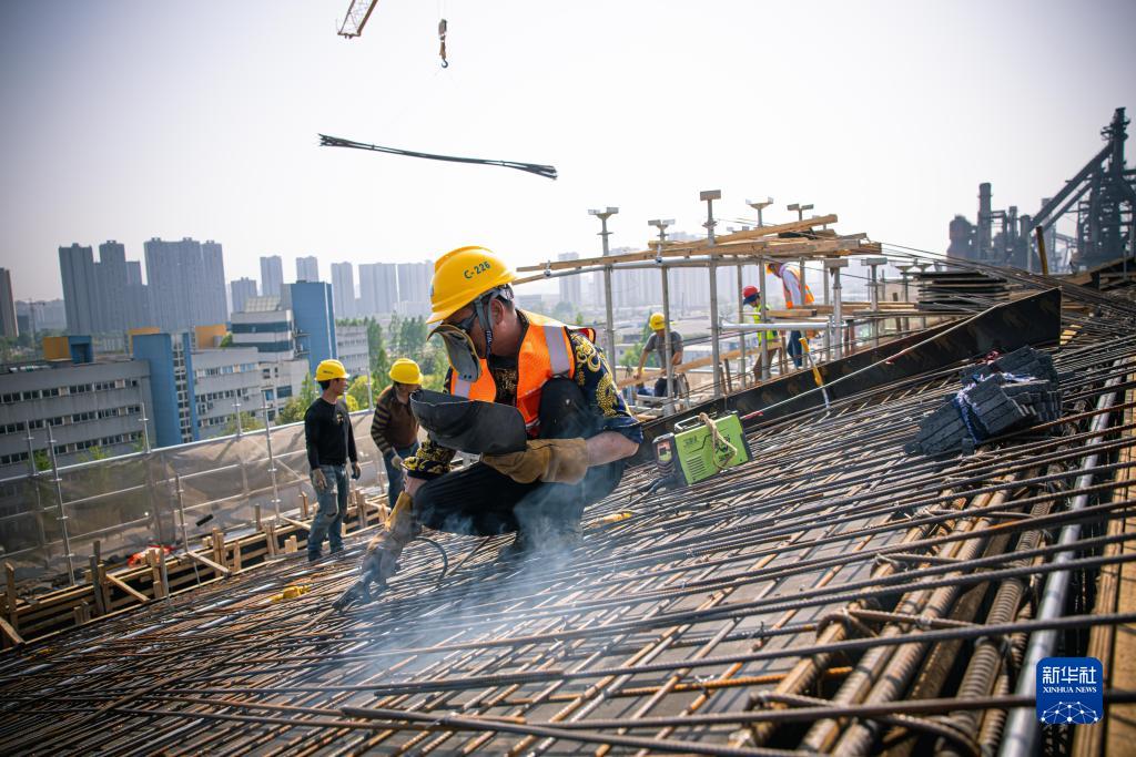 4月17日,中建三局的建筑工人在杭鋼工業舊址綜保項目一期工程現場施工。