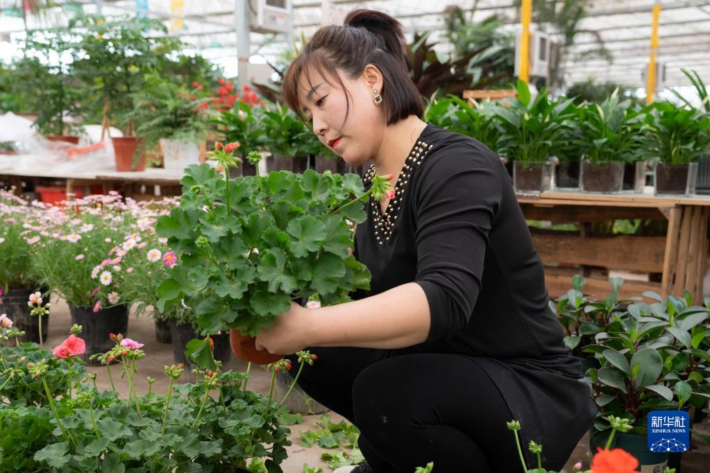 4月17日,在河北省廊坊市永清縣恒美國際花都,一名商戶在打理鮮花。