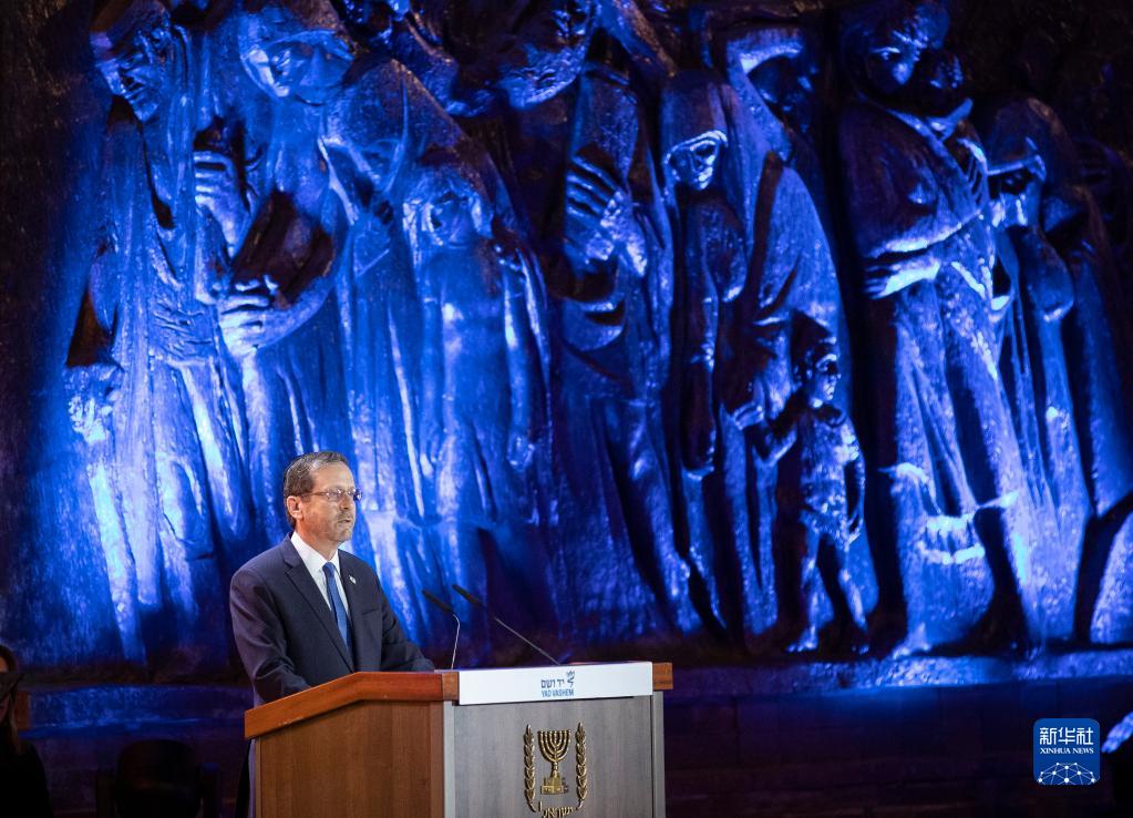 4月17日,以色列總統赫爾佐格在耶路撒冷舉行的大屠殺紀念日活動上講話。
