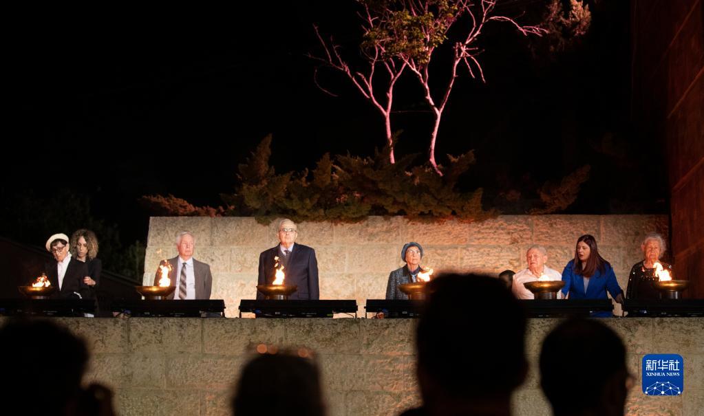 以色列17日晚在位于耶路撒冷赫茨爾山的亞德瓦希姆大屠殺紀念館舉行大屠殺紀念日活動,悼念第二次世界大戰中的猶太死難者。