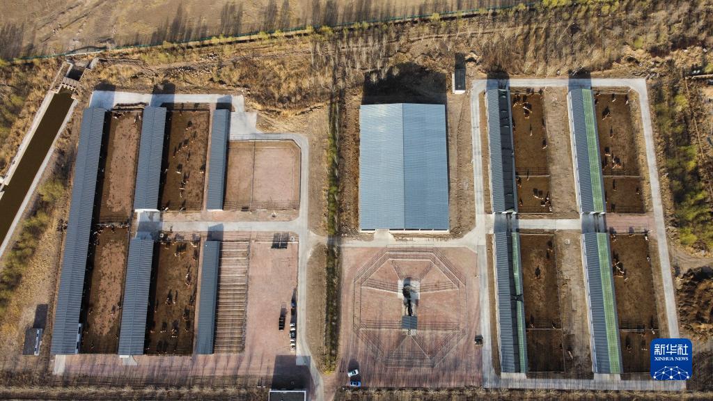 4月17日,這是通遼市科爾沁左翼中旗一家肉牛種業(yè)公司的牛圈(無人機(jī)照片)。