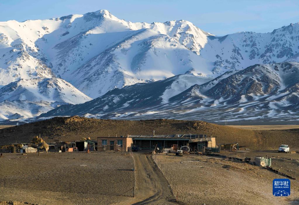巴哈提一家在新疆裕民縣巴爾魯克山南坡牧場的房屋外景(4月13日攝)。屋旁的白色汽車是家人為慶祝女兒昆樹阿克考上大學,在2022年夏天買的禮物。