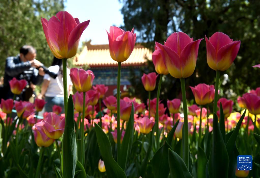 目前,北京中山公園的郁金香花開正艷。據了解,今年,北京中山公園布置了六個主題景區,展出85個品種近20萬株郁金香及洋水仙、葡萄風信子等球根花卉。