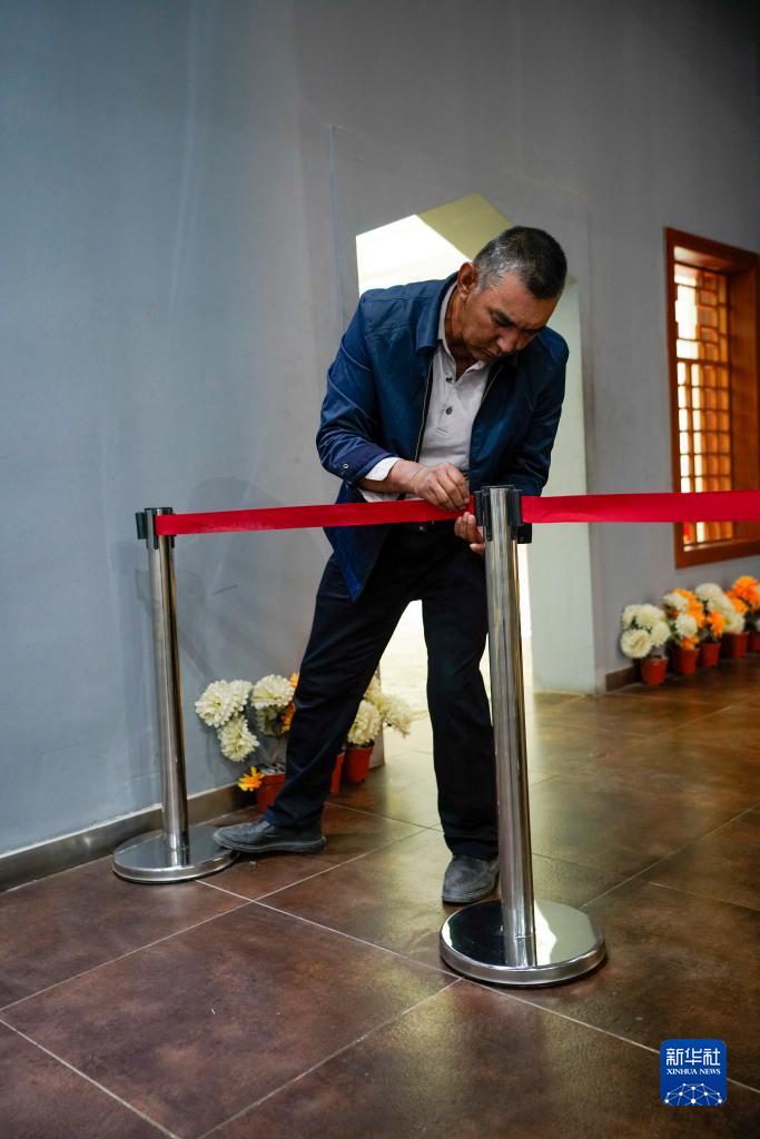 4月16日,艾尼瓦爾·艾買爾在新疆葉城烈士陵園內(nèi)工作。