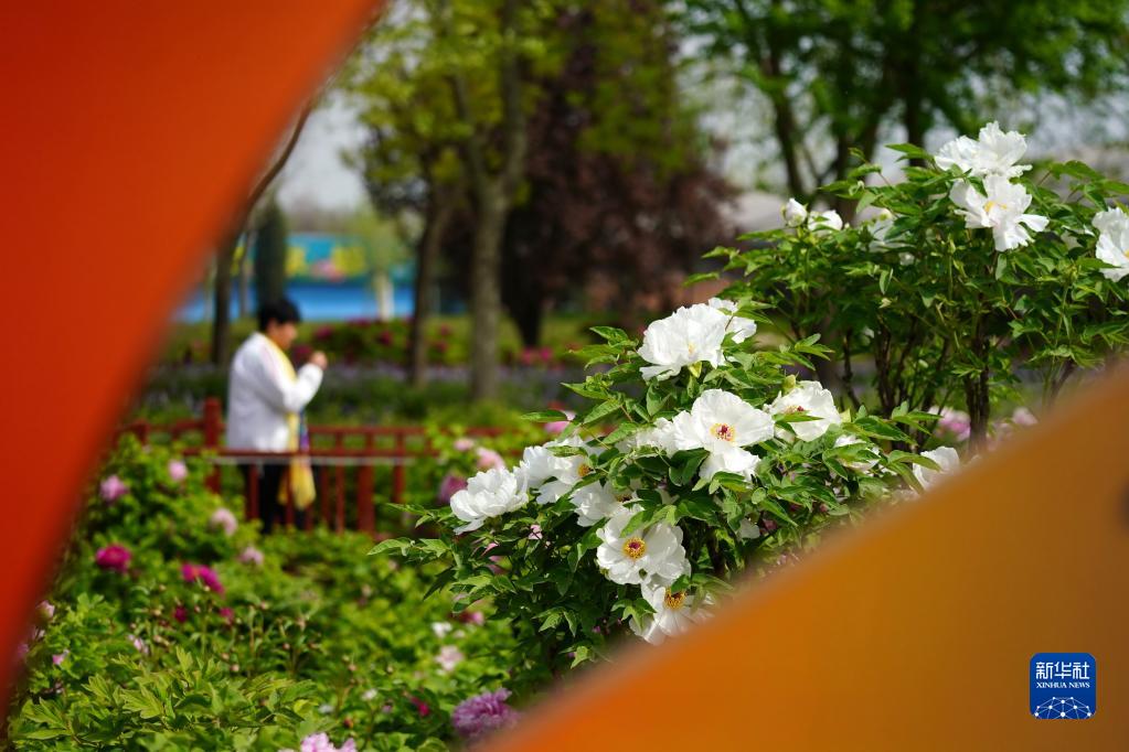 4月18日,游客在河北省柏鄉(xiāng)縣漢牡丹園游覽。