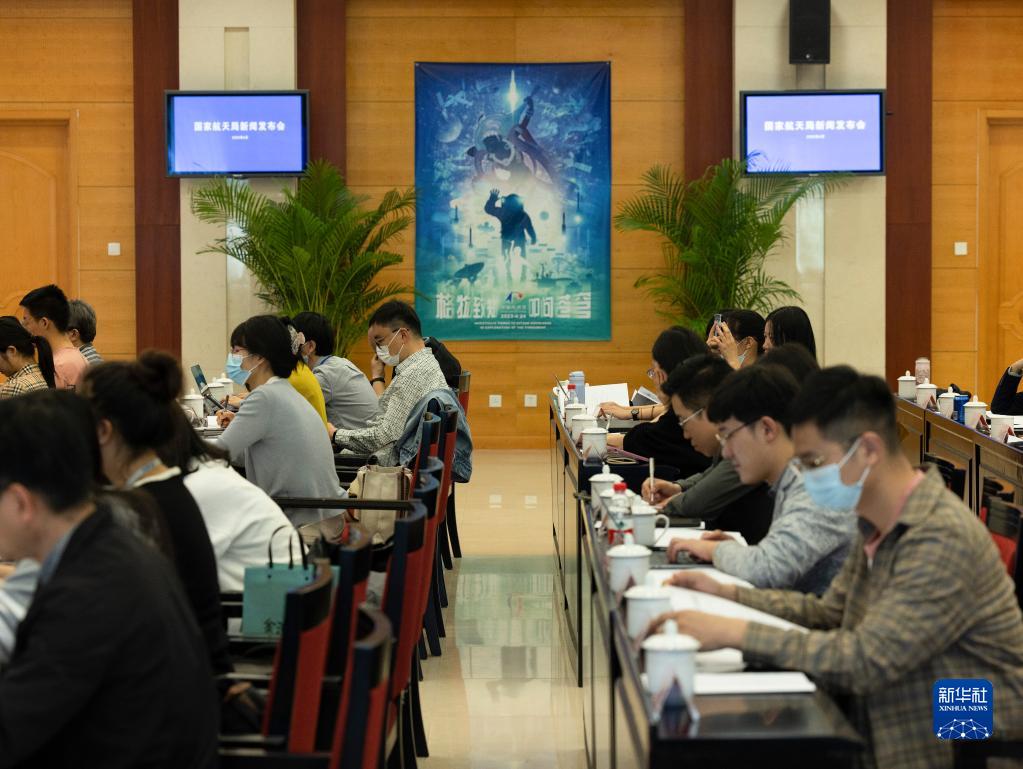 4月18日拍攝的2023年中國航天日新聞發(fā)布會現(xiàn)場。