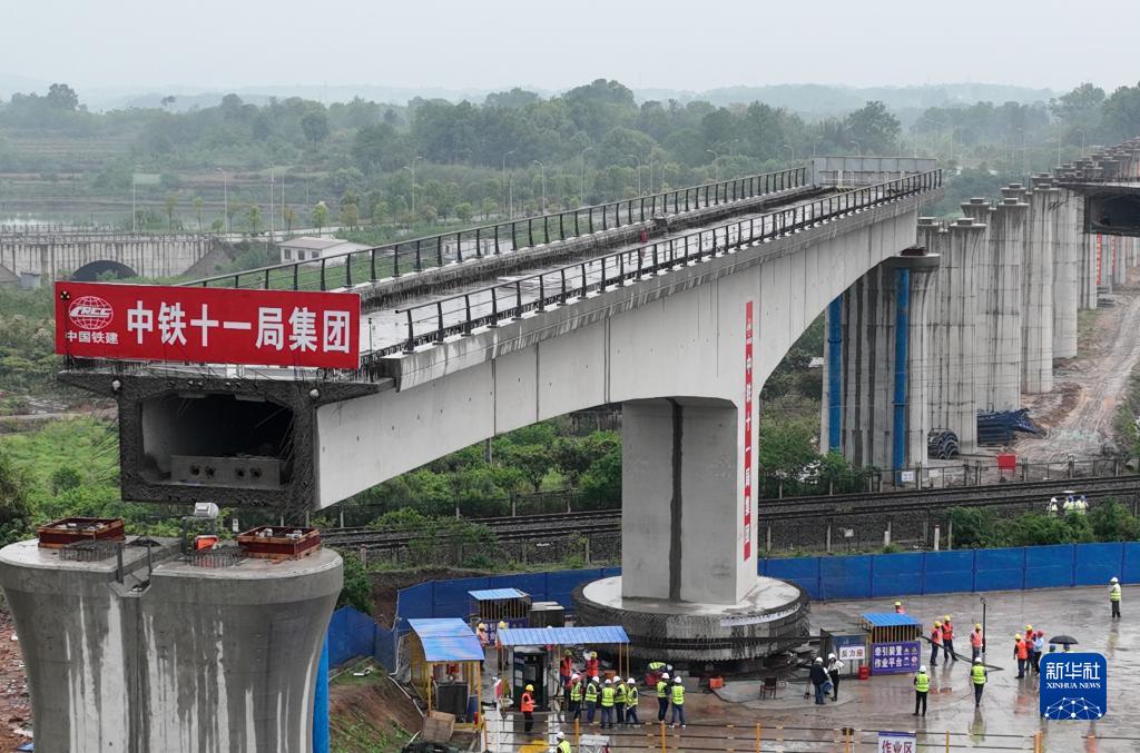 滬渝蓉高鐵首座轉體橋順利轉體