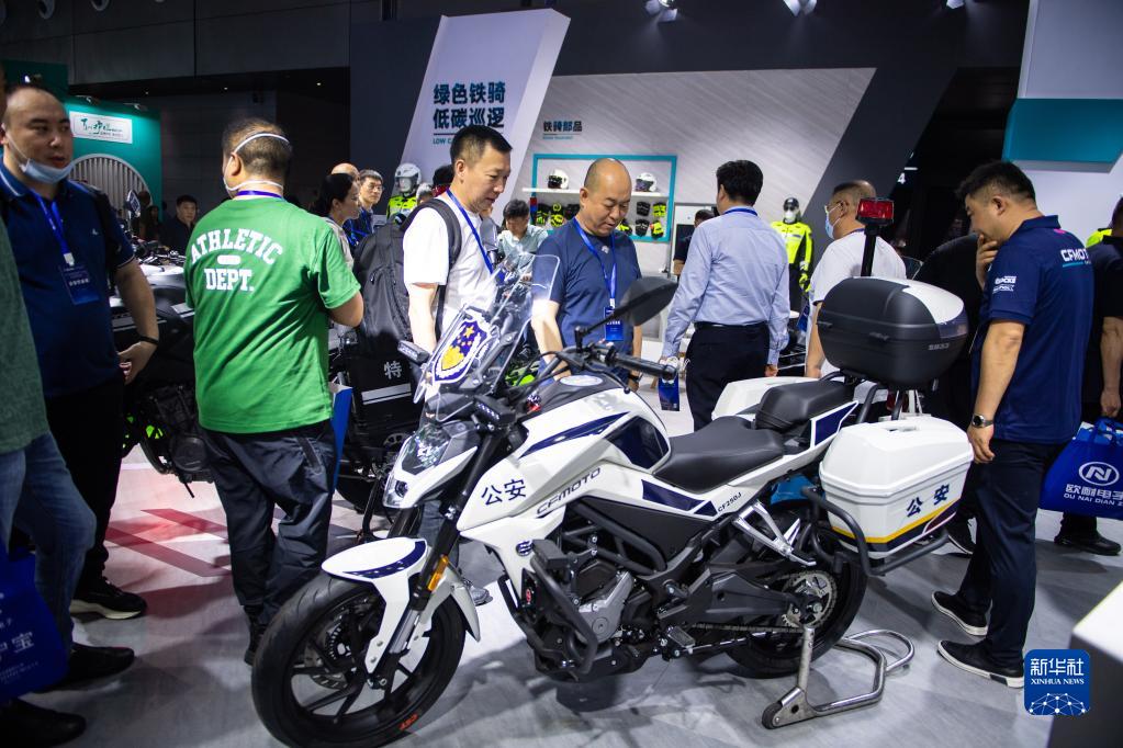4月19日,在長沙國際會展中心,觀眾在觀看一輛警用摩托車。