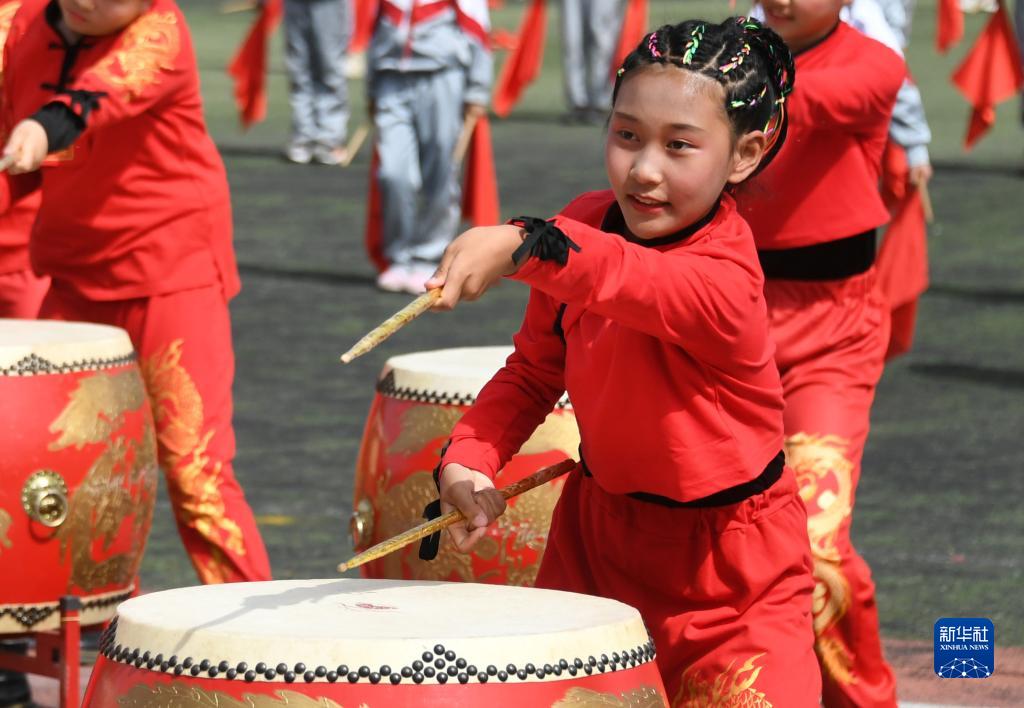 4月19日,門樓中心小學的學生在活動中進行鼓舞表演。
