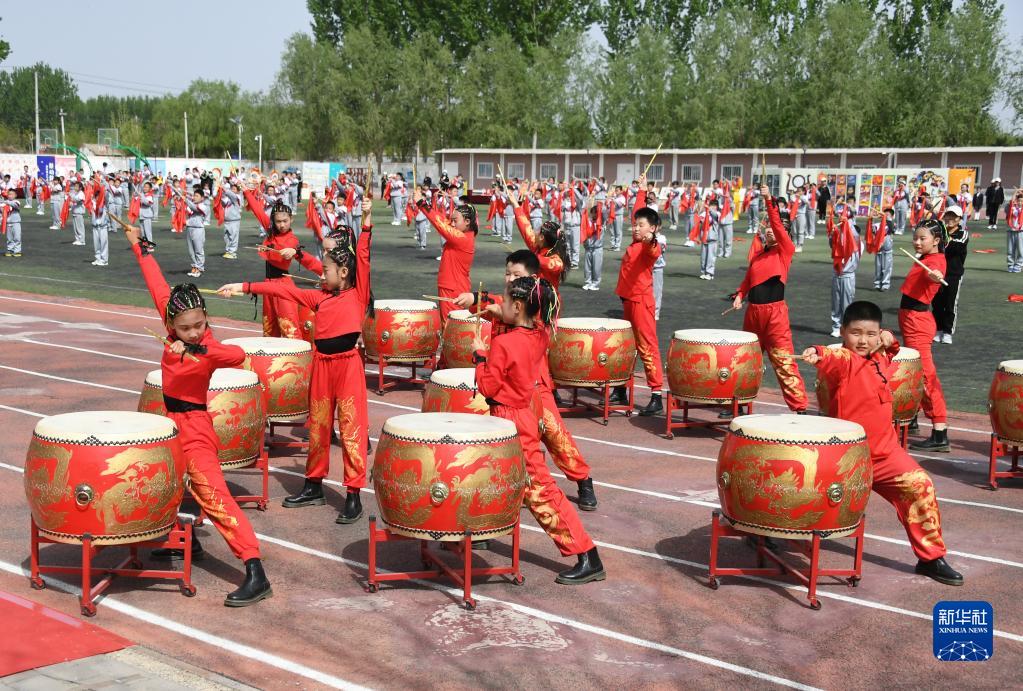 4月19日,門樓中心小學的學生在活動中進行鼓舞表演。