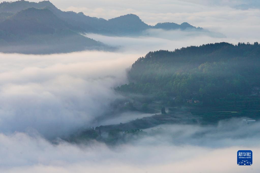 當日,位于重慶市南川區的世界自然遺產地金佛山雨后放晴,山間升騰起的水汽匯聚成云海在山巒之間流淌,美不勝收。