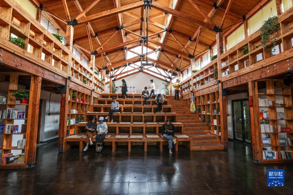 4月19日,讀者在江村文化禮堂閱讀書籍。