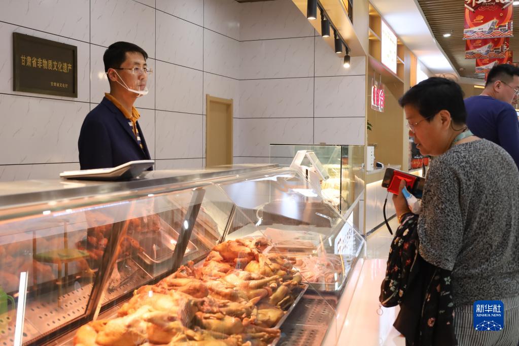 4月19日,游客在甘肅省白銀市會寧紅色驛站購買特色小吃。
