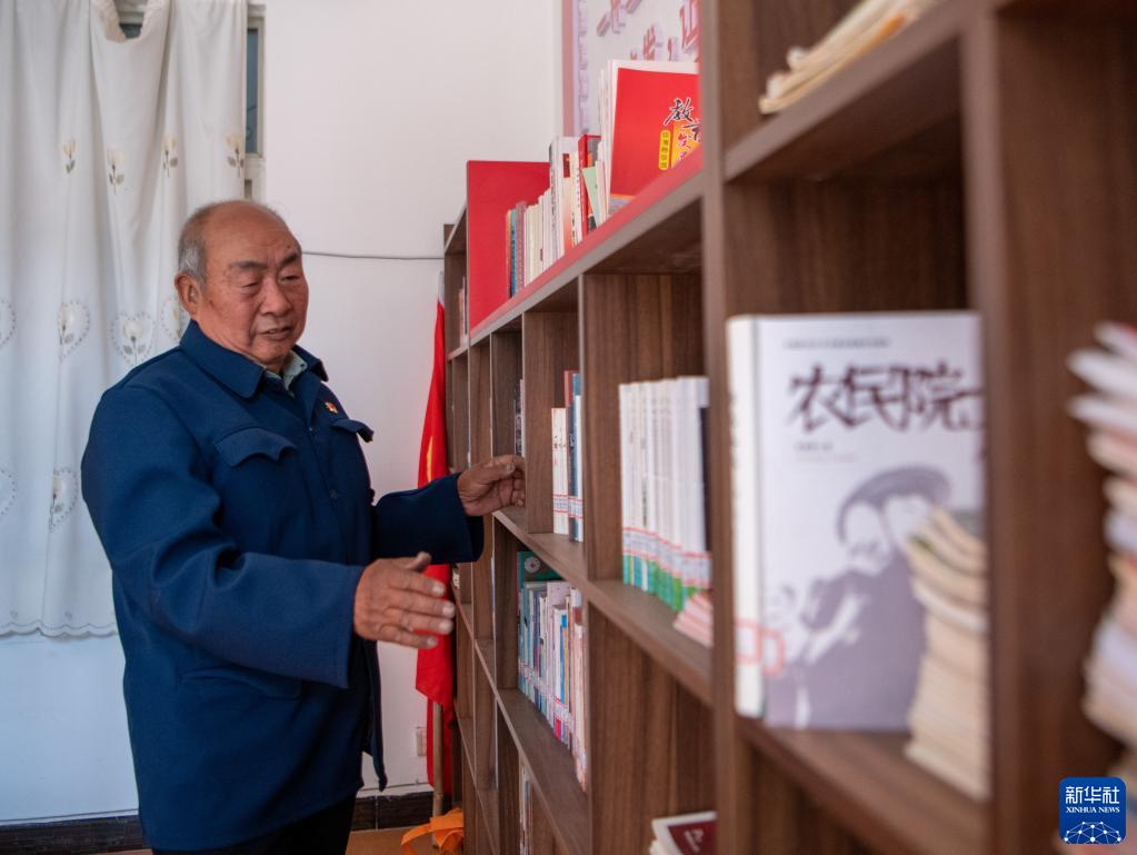 4月18日,李存德在紅星村的農家書屋中整理書籍。